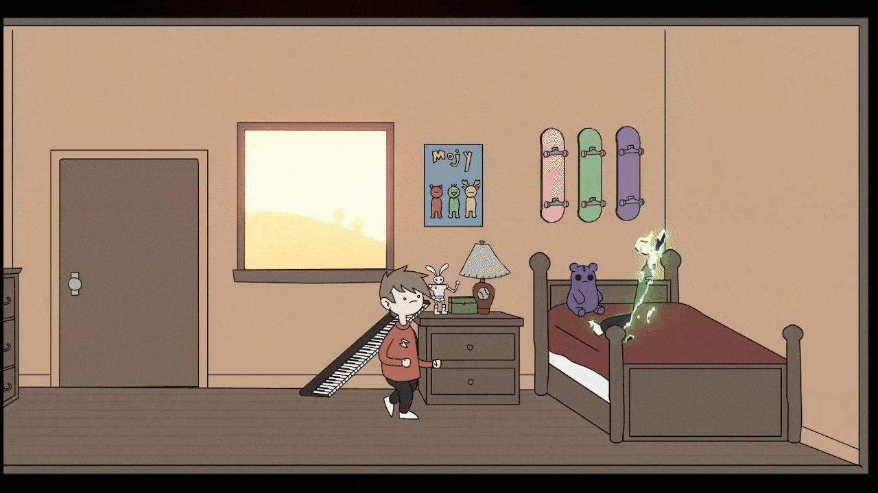I’ve worked on a lot of polish and front end effects for our game as well. The gif on the left shows off one of the shaders I created for the dream sequences that Mac sees. It uses a normal map and emission to apply a glow effect and change in alpha. I’ve also worked on polishing up UI, camera shake effects, and implementing animations.